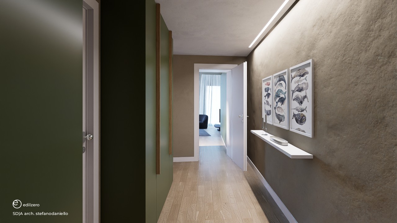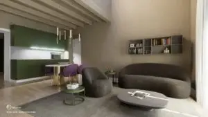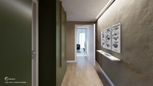 L'appartamento presentato in queste immagini di rendering è l’appartamento G, così strutturato: