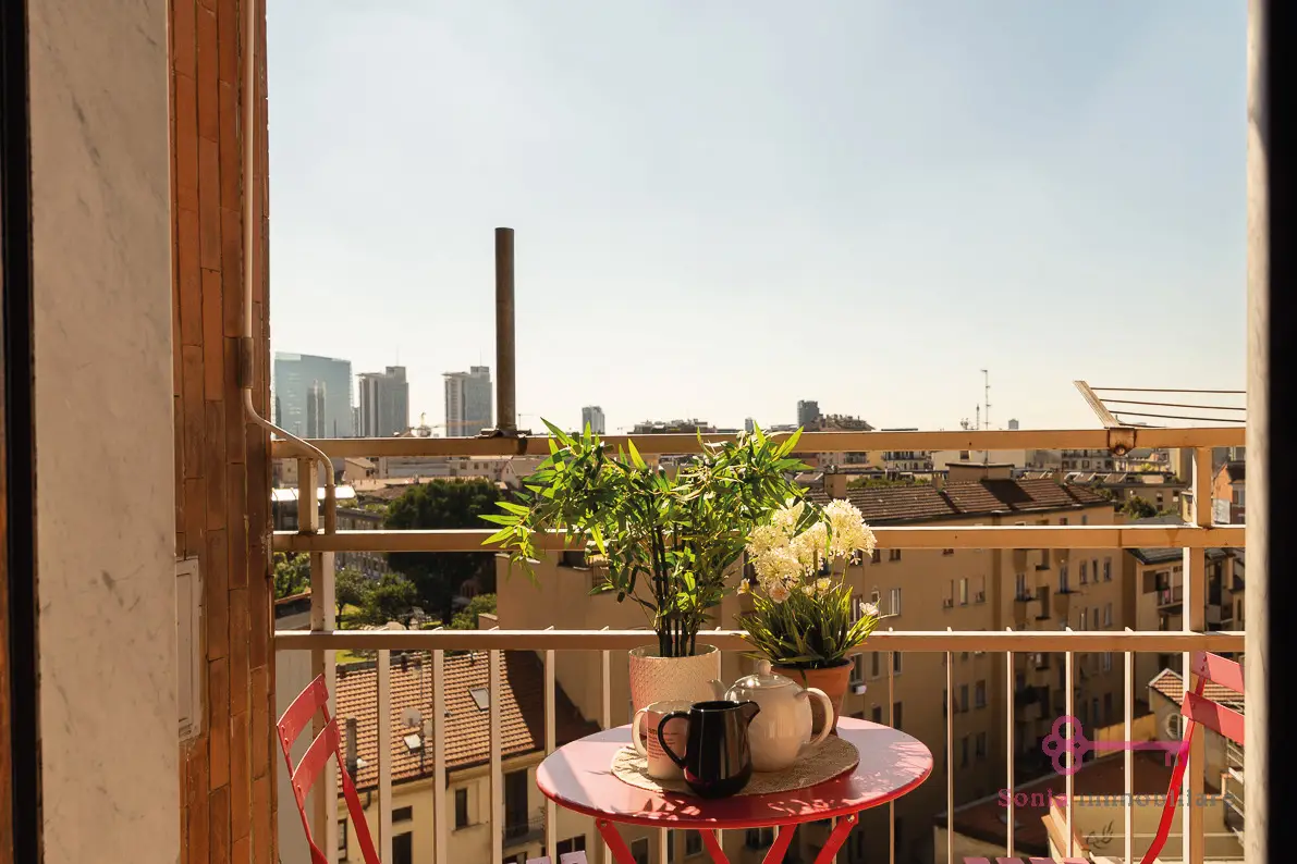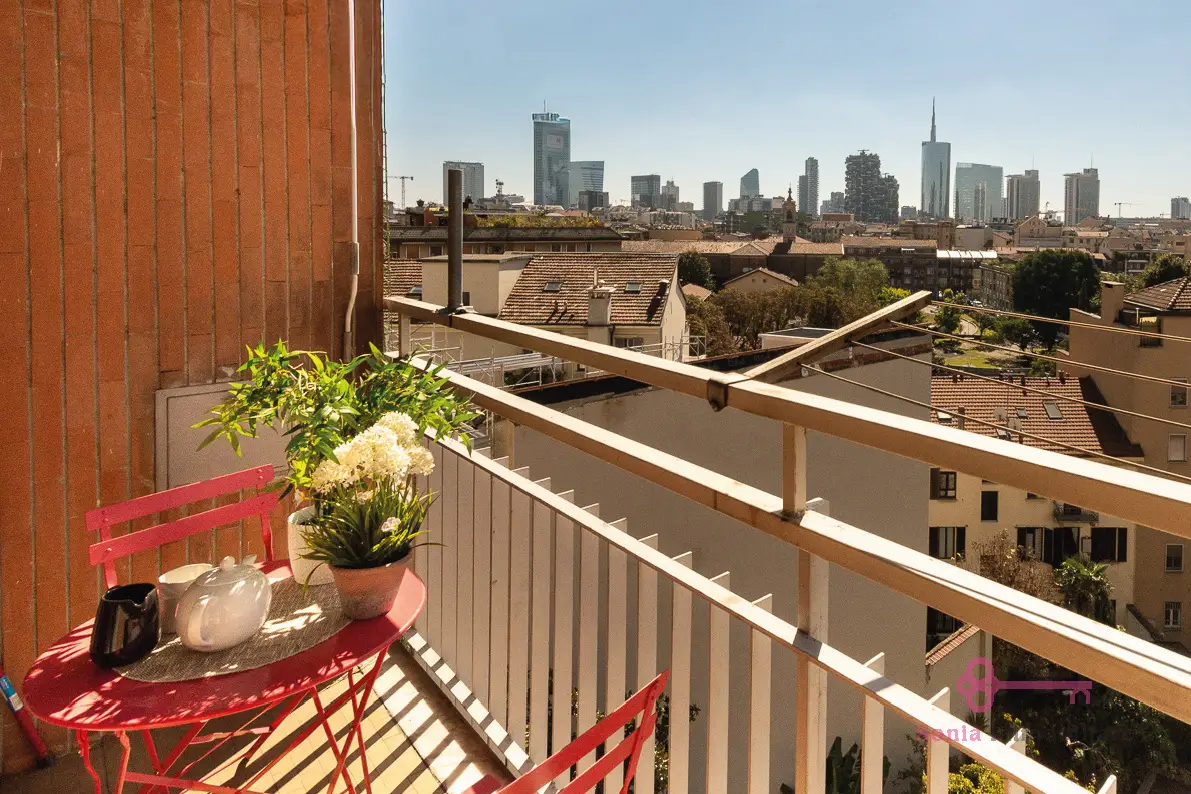 Qui la luce è protagonista: filtra da ogni lato grazie alla doppia esposizione e accompagna lo sguardo verso lo skyline più iconico di Milano, dal Bosco Verticale alla Torre UniCredit.