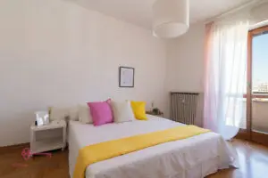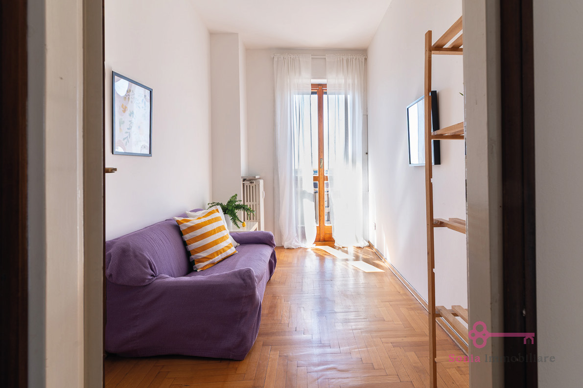 Gli spazi, ampi e ben distribuiti, offrono già molto: una zona giorno perfetta per momenti conviviali, una cucina abitabile con balcone affacciato sull’ampio e silenzioso cortile interno, due camere matrimoniali entrambe con balcone, uno studio e due bagni.